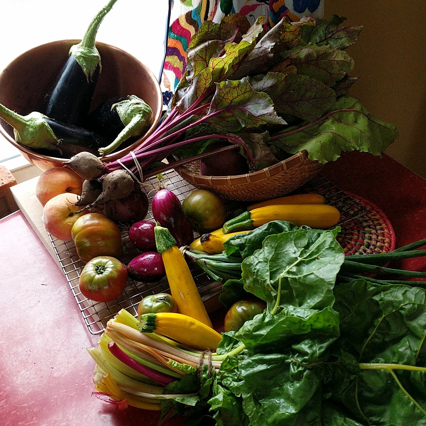Cooking is a creative endeavor – beginning with the selection of foods to prepare. Coming home from the farmer’s market with perfect vegetables, herbs, and fruits is so satisfying.