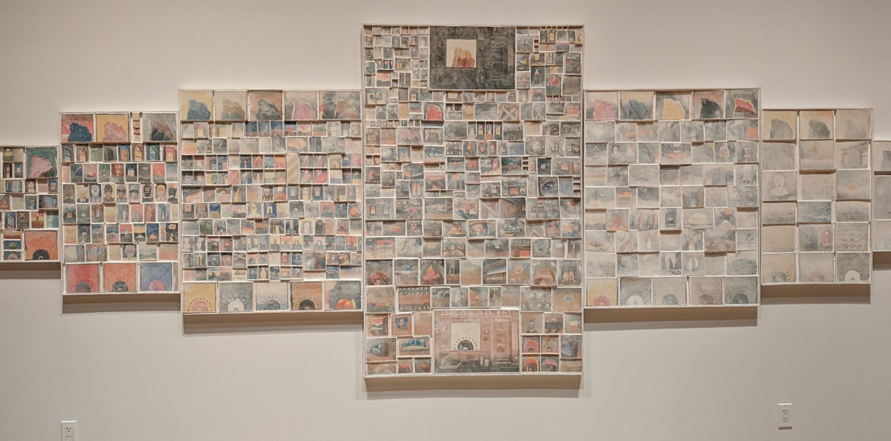 Sawka, his wife and daughter would travel for summer vacations to Asbury, New Jersey. Sawka felt the urban decline of Asbury Park reminded him of the conditions in Soviet-dominated Poland. The painting, “Asbury Notebook,” contains a multitude of small sketches and paintings that describe one detail about the place. Together, the images create a symphony of visuals.