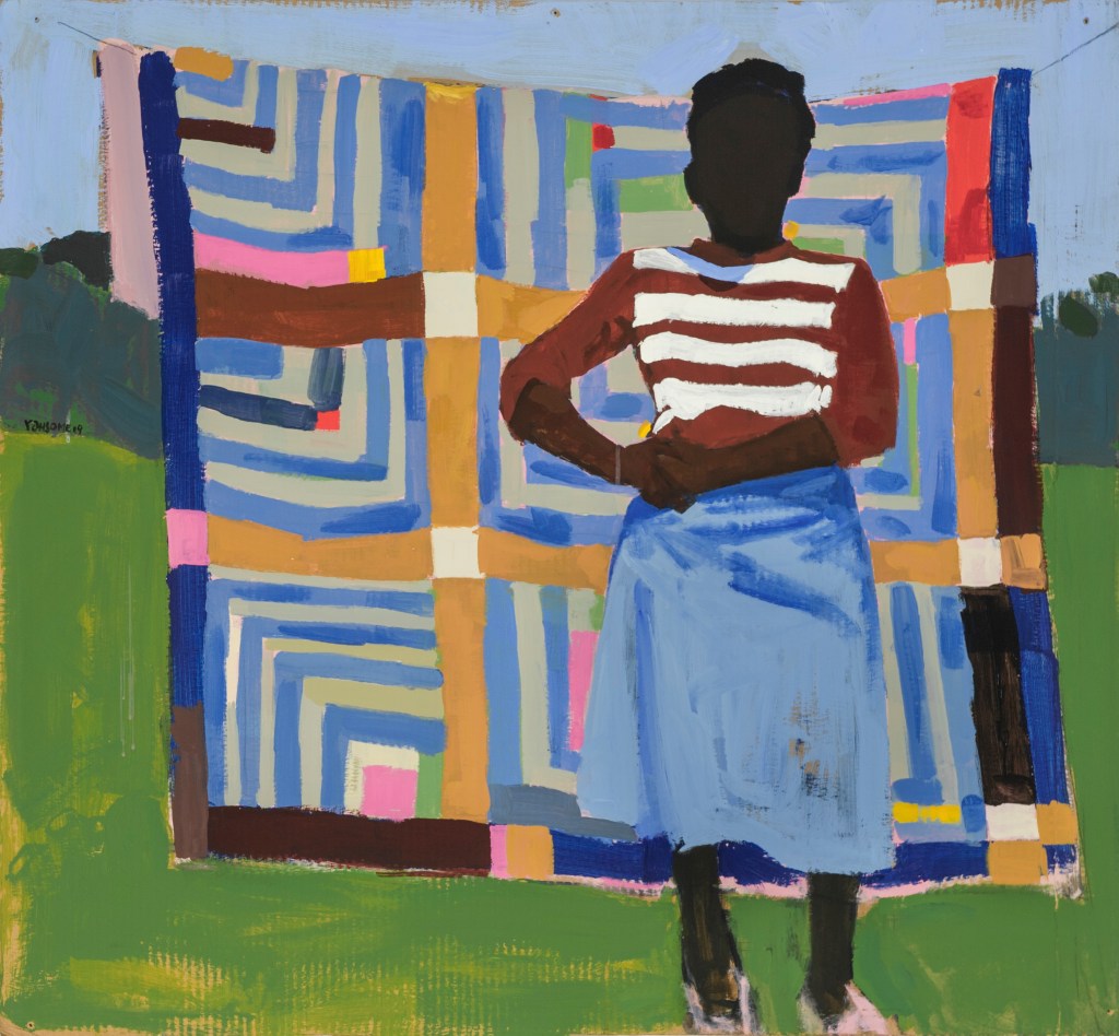 Ransome has created a narrative history of life grounded in being a Black person in America. Bounded by the past, but looking at the future, Ransome makes paintings that revere the artistic brilliance of Black persons that have taken this path. He references the work of Kerry James Marshall, a Black American artist that has dedicated his art career to depicting the lives of Black persons in their everyday life, as well as the quilters of Gee’s Bend, a collective of Alabama quilters who went on to exhibit their work at the Whitney Museum of American Art and beyond.