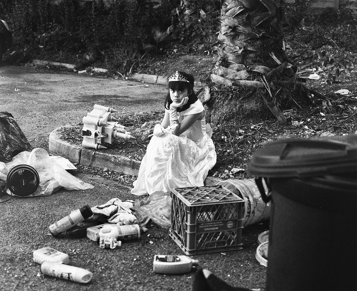 Other themes noted in the exhibition are human’s ability to adapt to trauma. In consideration of the restrictions and stress that the pandemic has brought, rituals that soothe continue, such as a warm bath as seen in “Natalia” by Sharon Draghi. Photographer Norman Aragones exhibits two photographs that explore these rituals. In “Grandmother Praying,” we immediately understand the comfort of praying over rosary beads. At the other end of the life spectrum, in “Growing Up,” he captured a young girl costumed as a fairy princess complete with plastic tiara and magic wand. She appears to be lost in thought as she sits among a pile of trash that includes a cast away toy castle.