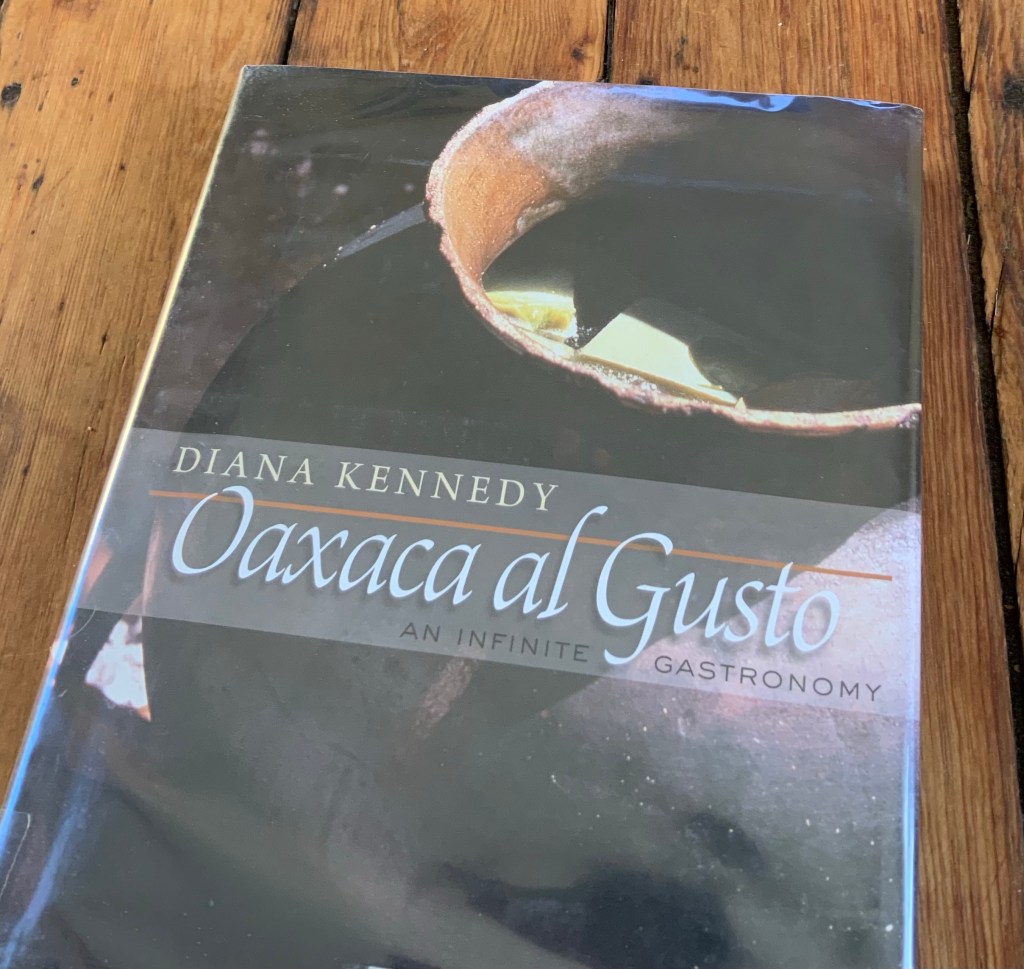 Oaxaca al Gusto: An Infinite Gastronomy by Diana Kennedy is on my bookshelf. This is more than a cookbook – the recipes are from Oaxacan cooks across the state of Oaxaca. Kennedy did extensive travel and research gathering traditional dishes from the state that was divided into ten regions. I return to this book frequently to learn about the ingredients and process of these traditional foods.