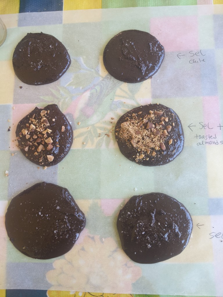 The chocolate comes out of the machine warm. After we walked back home we hand-formed small disks that cooled on parchment paper. As novices to this process we were excited about our first batch, and we now are fantasizing about adding ground chile and other enhancements to the chocolate.